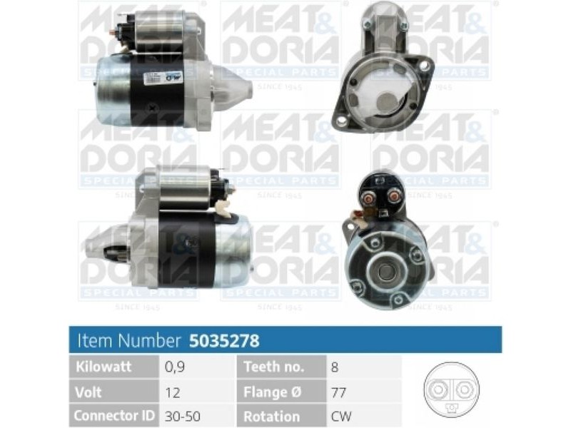 Criteries : ID παραλλαγής σύνδεσης 30-50, Αριθμός δοντιών 8, για κωδικό γνήσιου ανταλλακτικού 3610021750, Διάμετρος φλάντζας [mm] 77, Ισχύς μίζας [kW] 0,9, Πλήθος των οπών στερέωσης 2, Τάση [V] 12, Φορά περιστροφής Φορά περιστροφής προς τα δεξιά