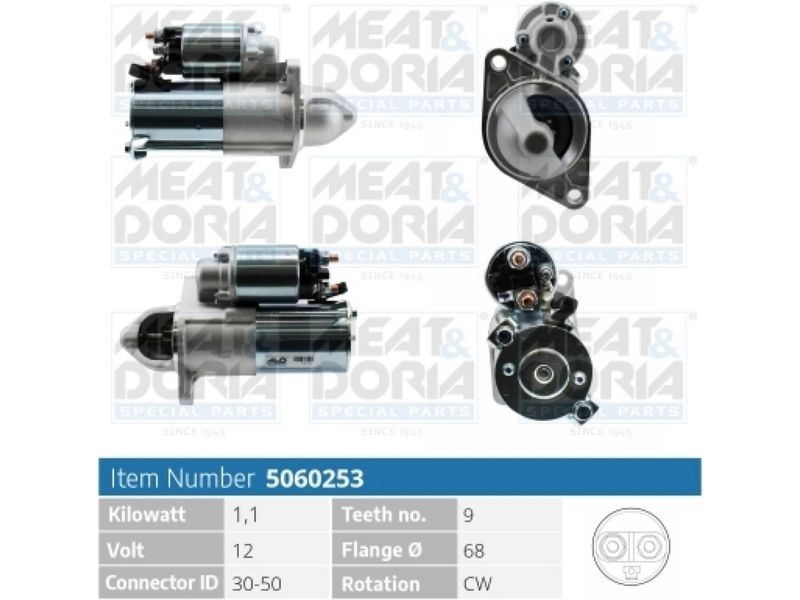 Criteries : ID παραλλαγής σύνδεσης 30-50, Αριθμός δοντιών 9, για κωδικό γνήσιου ανταλλακτικού 55576980, Διάμετρος φλάντζας [mm] 68, Ισχύς μίζας [kW] 1,1, Πλήθος των οπών στερέωσης 2, Τάση [V] 12, Φορά περιστροφής Φορά περιστροφής προς τα δεξιά