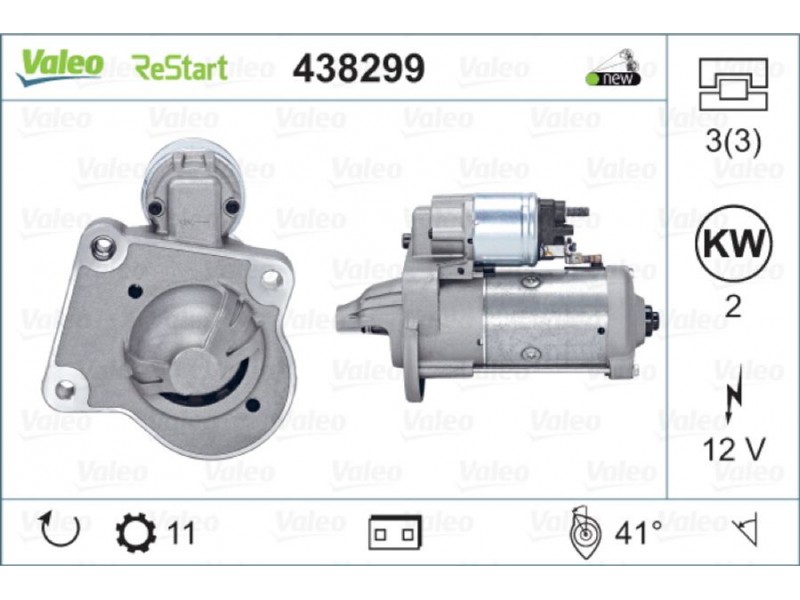 Criteries : Αριθμός δοντιών 11, Αριθμός οπών 3, Βάρος [kg] 4,359, Εξοπλισμός οχήματος για οχήματα με λειτουργία Start/Stop, Επαφή NO, Θέση/βαθμοί L 41, Ισχύς μίζας [kW] 2, Νέο εξάρτημα χωρίς δέσμευση , Πλήθος οπών με βόλτα 3, Τάση [V] 12, Φορά περιστροφής Φορά περιστροφής προς τα δεξιά