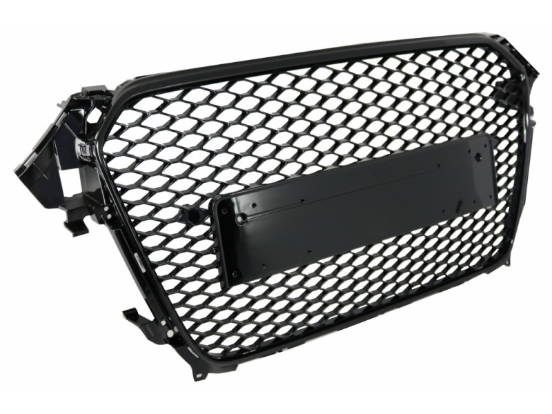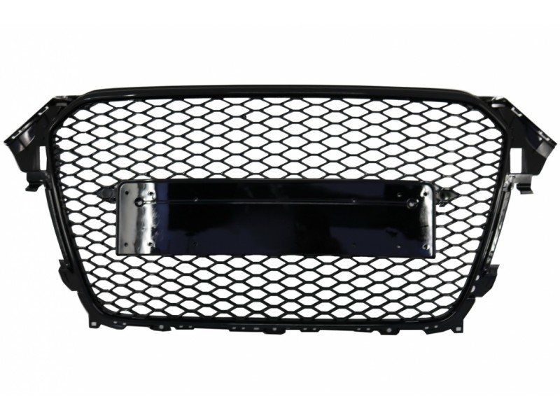 Μπροστινή Μάσκα Χωρίς Σήμα Κατάλληλη Για Audi A4 B8 Facelift (2012-2015) Rs Design Honeycomb Piano Black Με Καλύμματα Pdc