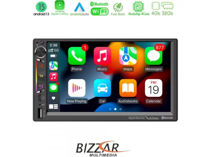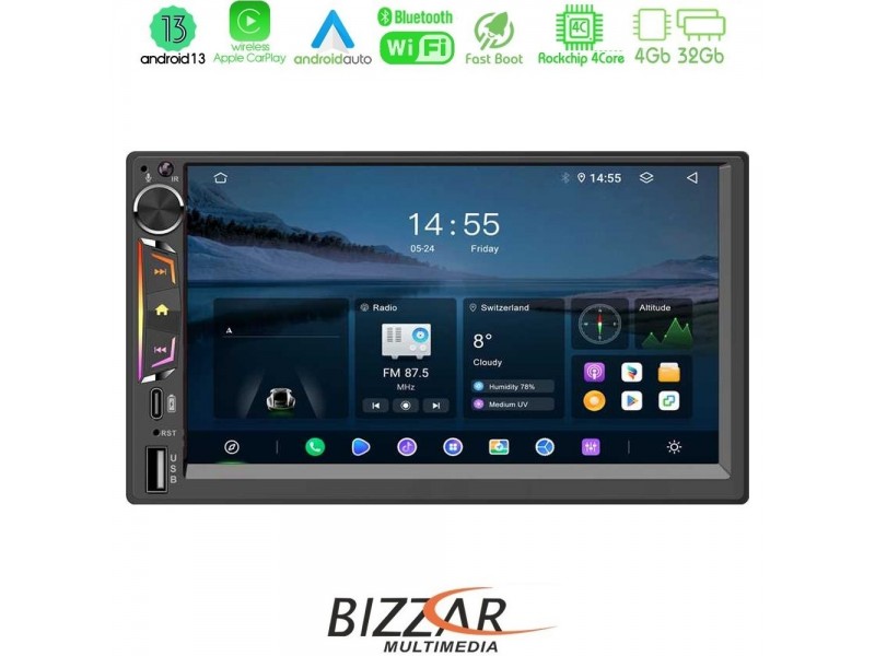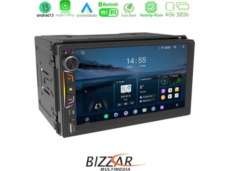 Bizzar 2DIN Deck 4core Android13 4+32GB Navigation Multimedia Deckless 7" Με Carplay/AndroidAuto