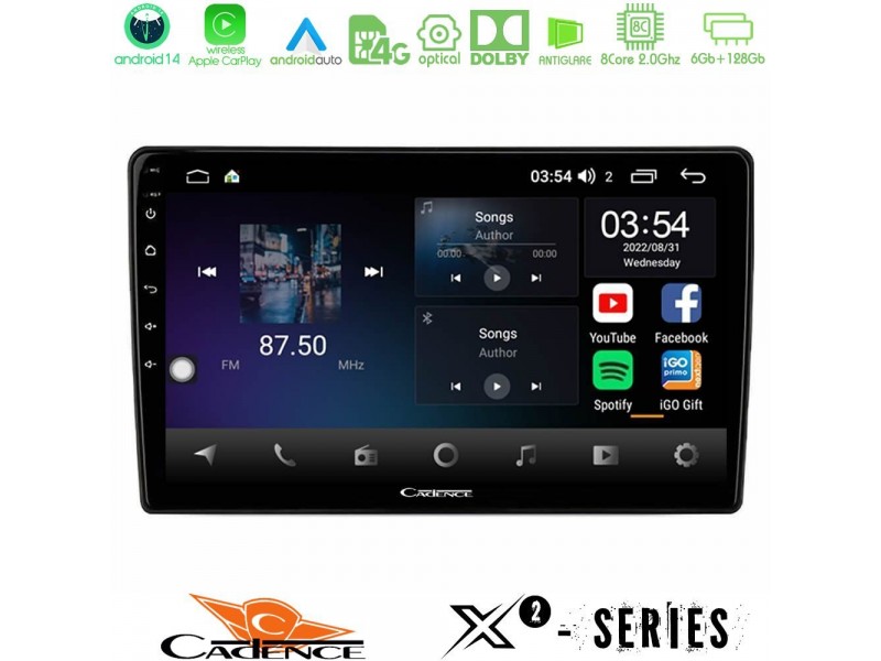 Cadence X2 Series 8Core Android14 6+128GB Navigation Multimedia Tablet 10" Με Carplay & Android Auto