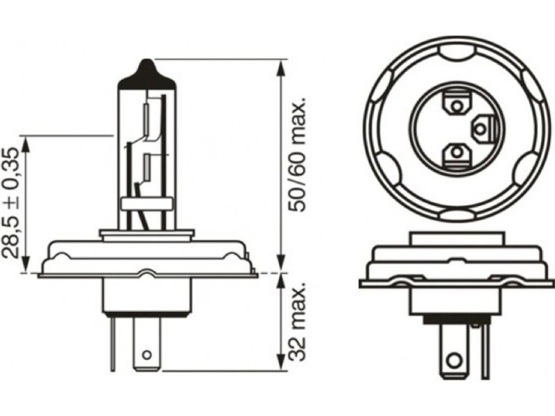 Criteries : Είδος λάμπας R2 (Bilux), Έκδοση βάσης λαμπτήρα πυράκτωσης P45t, Ονομαστική ισχύς [W] 45/40, Τάση [V] 12