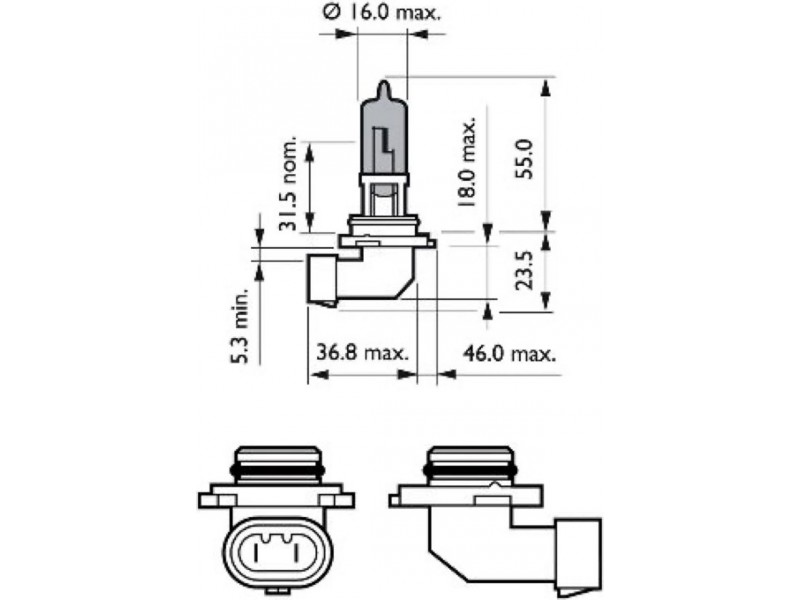 Criteries : Είδος λάμπας HB3, Έκδοση βάσης λαμπτήρα πυράκτωσης P20d, Ονομαστική ισχύς [W] 60, Τάση [V] 12