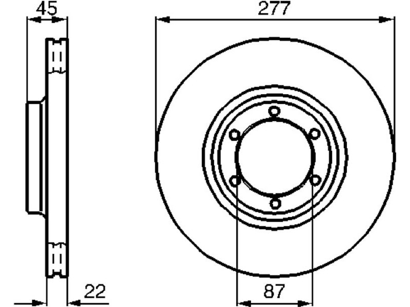 Criteries : Αριθμός οπών 6, Διάμετρος κέντρωσης [mm] 87,1, Διάμετρος κύκλου οπής [mm] 108, Διάμετρος οπής έως [mm] 10,67, Ελάχιστο πάχος [mm] 20,4, Εξωτερική διάμετρος [mm] 277,2, Επιφάνεια λαδωμένο, Πάχος δισκόπλακας [mm] 22, Τύπος δισκόφρενων αεριζόμενο, Υψος [mm] 45,1