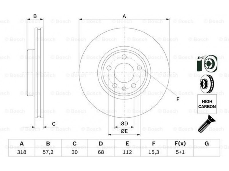 Criteries : Αριθμός οπών 5, Διάμετρος κέντρωσης [mm] 68, Διάμετρος κύκλου οπής [mm] 112, Διάμετρος οπής έως [mm] 15,3, Ελάχιστο πάχος [mm] 28, Εξωτερική διάμετρος [mm] 318, Επεξεργασία υψηλής ανθράκωσης, Επιφάνεια με επίστρωση, Πάχος δισκόπλακας [mm] 30, πληρεί τις προδιαγραφές ECE ECE-R90, Συμπληρωματικό προϊόν/ πληροφορίες 2 Με βίδες, Τύπος δισκόφρενων αεριζόμενο, Υψος [mm] 57,2