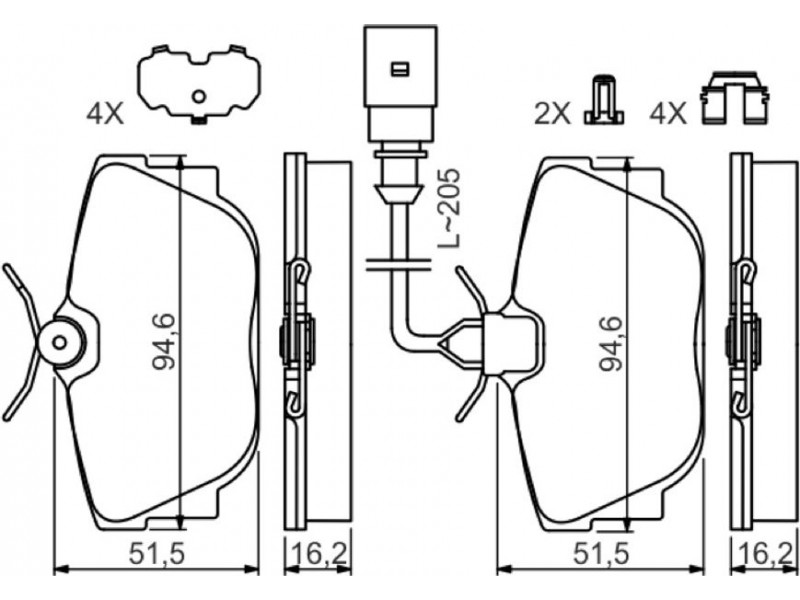 0986494619 - ΣΕΤ ΤΑΚ.ΟΠ.VW TRANSPORTER 16 BOSCH 0 986 494 619 - Σετ τακάκια, δισκόφρενα