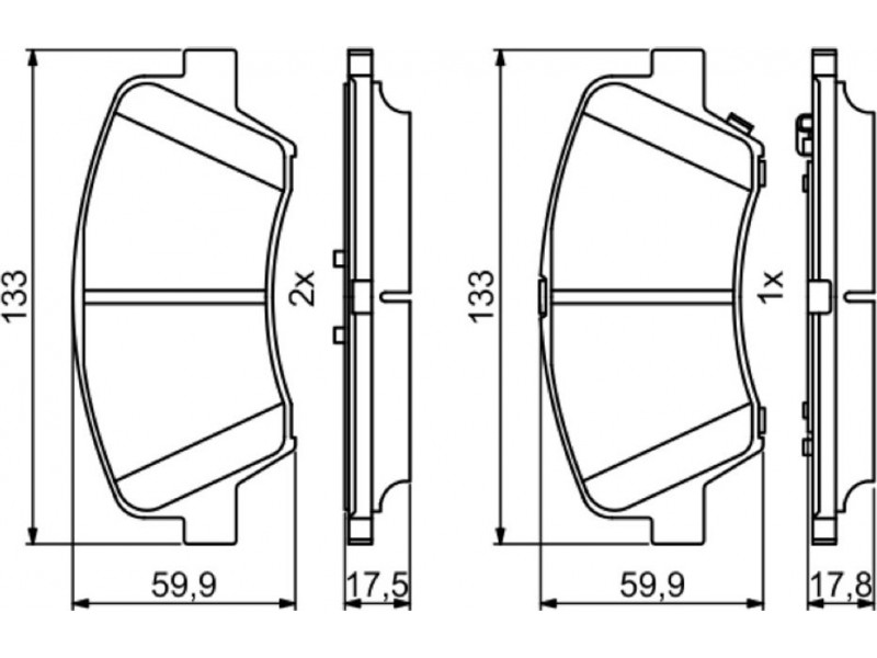 Criteries : Αριθμός WVA 25692, Δώστε προσοχή στα τεχνικά στοιχεία , Επαφή προειδοποίησης φθοράς με ηχητική προειδοποίηση φθοράς, Πάχος 1 [mm] 17,5, Πάχος 2 [mm] 17,8, Πλάτος [mm] 133, Στοιχεία ελέγχου ECE-R90, Συμπληρωματικό προϊόν/ πληροφορίες 2 με αντικραδασμικό έλασμα, Υλικό Low-Metallic, Υψος [mm] 59,9