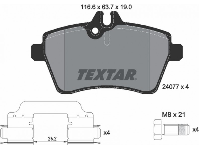 TEXTAR (1144 00) ΔΙΣΚΟΦΡΕΝΑ MERCEDES (19.0 mm) TEXTAR 2407702 - Σετ τακάκια, δισκόφρενα