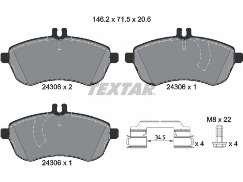 TEXTAR (2430603) (1301 00) ΔΙΣΚΟΦΡΕΝΑ MERCEDES (20.6 mm) TEXTAR 2430601 - Σετ τακάκια, δισκόφρενα
