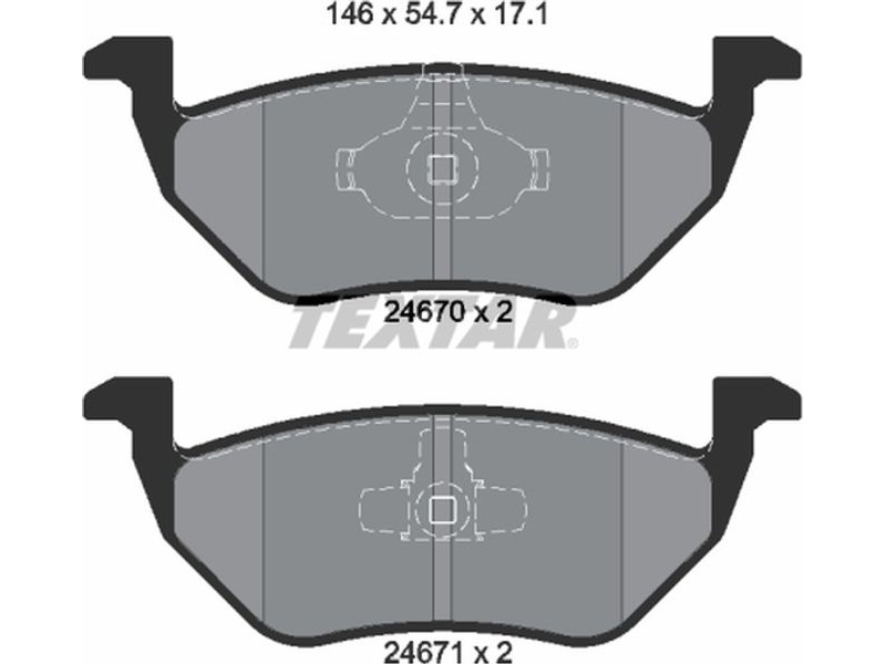 Criteries : Αριθμός WVA 24670, Βάρος [kg] 1,32, Επαφή προειδοποίησης φθοράς όχι προετοιμασμένο για προειδοποιητική ένδειξη φθοράς, μήκος συσκευασίας [cm] 17, Πάχος [mm] 17,1, Πλάτος [mm] 146, πλάτος συσκευασίας [cm] 12, Σύστημα φρένων Teves, Υψος [mm] 54,7, ύψος συσκευασίας [cm] 8,3