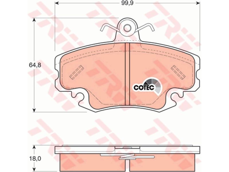 Criteries : Επαφή προειδοποίησης φθοράς προετοιμασμένο για προειδοποιητική ένδειξη φθοράς, Πάχος [mm] 18, Περιορισμός κατασκευαστή TRW, Πλάτος [mm] 99,9, Στοιχεία ελέγχου E1 90R 01024/113, Συμπληρωματικό προϊόν / συμπληρωματική πληροφορία με αξεσουάρ, Συμπληρωματικό προϊόν/ πληροφορίες 2 με βίδες δαγκάνας φρένων, Υψος [mm] 64,8