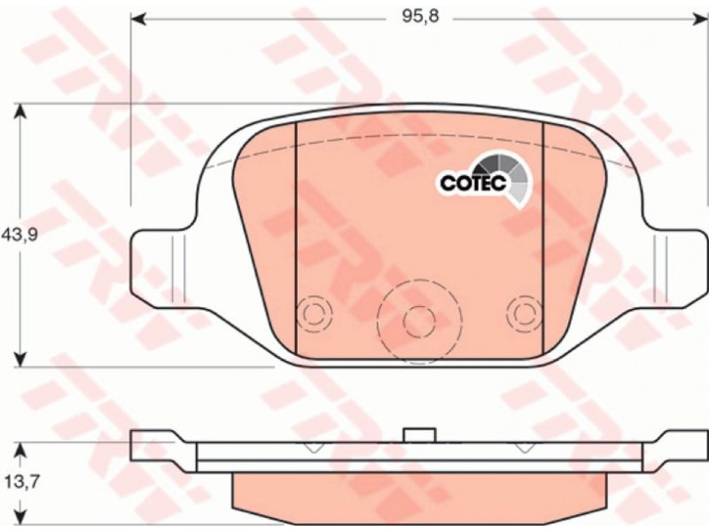 Criteries : Επαφή προειδοποίησης φθοράς όχι προετοιμασμένο για προειδοποιητική ένδειξη φθοράς, Πάχος [mm] 13,7, Περιορισμός κατασκευαστή TRW, Πλάτος [mm] 95,8, Στοιχεία ελέγχου E9 90R 01120/354, Υψος [mm] 43,9