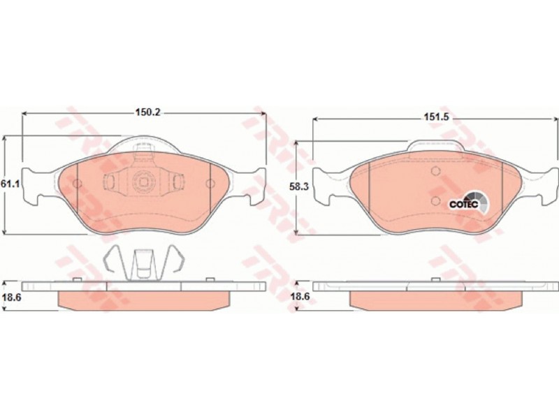TRWGDB1419 ΤΑΚΑΚΙΑ ΕΜΠΡ.(ΣΥΣΤ.TEVES) TRW GDB1419 - Σετ τακάκια, δισκόφρενα