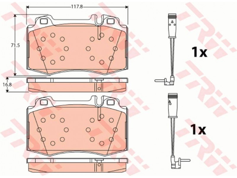 Criteries : Επαφή προειδοποίησης φθοράς συμπεριλ. επαφής για ένδειξη φθοράς, Πάχος [mm] 17,2, Περιορισμός κατασκευαστή BREMBO, Πλάτος [mm] 117,8, Στοιχεία ελέγχου E9 90R 01107/282, Υψος [mm] 71,6