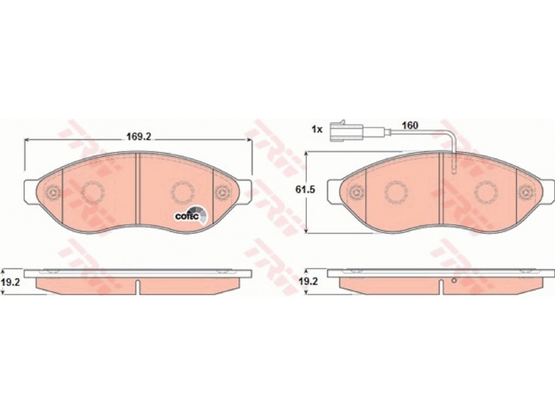 Criteries : Επαφή προειδοποίησης φθοράς συμπεριλ. επαφής για ένδειξη φθοράς, Μήκος επαφής προειδοποίησης [mm] 160, Πάχος [mm] 19,2, Περιορισμός κατασκευαστή BREMBO, Πλάτος [mm] 169,2, Πλήθος ενδείξεων φθοράς [ανά άξονα] 2, Στοιχεία ελέγχου E9 90R - 01107/1627, Συμπληρωματικό προϊόν / συμπληρωματική πληροφορία με αξεσουάρ, Συμπληρωματικό προϊόν/ πληροφορίες 2 με βίδες δαγκάνας φρένων, Υψος [mm] 61,5