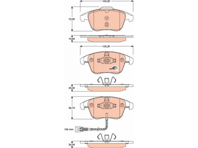 Criteries : Δώστε προσοχή στα τεχνικά στοιχεία , Επαφή προειδοποίησης φθοράς συμπεριλ. επαφής για ένδειξη φθοράς, Μήκος επαφής προειδοποίησης [mm] 165, Πάχος 1 [mm] 19,8, Πάχος 2 [mm] 20,3, Περιορισμός κατασκευαστή ATE, Πλάτος [mm] 155,2, Πλήθος ενδείξεων φθοράς [ανά άξονα] 1, Στοιχεία ελέγχου E9 90R-01107/1434, Ύψος 1 [mm] 72, Ύψος 2 [mm] 66,7