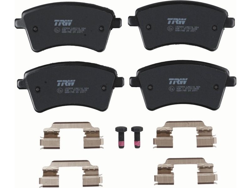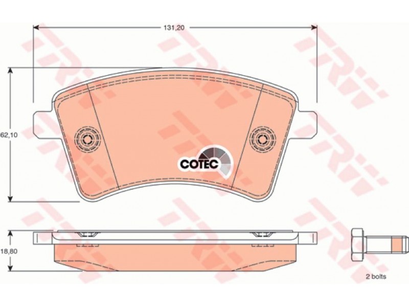Criteries : Επαφή προειδοποίησης φθοράς όχι προετοιμασμένο για προειδοποιητική ένδειξη φθοράς, Πάχος [mm] 18,6, Περιορισμός κατασκευαστή TRW, Πλάτος [mm] 131,2, Στοιχεία ελέγχου E9 90R - 01107/2402, Συμπληρωματικό προϊόν / συμπληρωματική πληροφορία με αξεσουάρ, Συμπληρωματικό προϊόν/ πληροφορίες 2 με βίδες δαγκάνας φρένων, Υψος [mm] 62,1