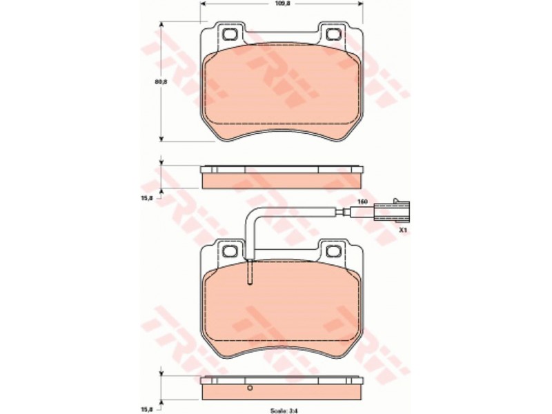 Criteries : Επαφή προειδοποίησης φθοράς συμπεριλ. επαφής για ένδειξη φθοράς, Μήκος επαφής προειδοποίησης [mm] 160, Πάχος [mm] 15,8, Περιορισμός κατασκευαστή BREMBO, Πλάτος [mm] 109,8, Πλήθος ενδείξεων φθοράς [ανά άξονα] 1, Στοιχεία ελέγχου E9 90R - 01107/3000, Υψος [mm] 80,8