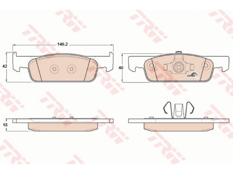 Criteries : Επαφή προειδοποίησης φθοράς όχι προετοιμασμένο για προειδοποιητική ένδειξη φθοράς, Πάχος [mm] 18, Περιορισμός κατασκευαστή ATE, Πλάτος [mm] 140,2, Στοιχεία ελέγχου E9 90R-02A0107/3737, Υψος [mm] 42