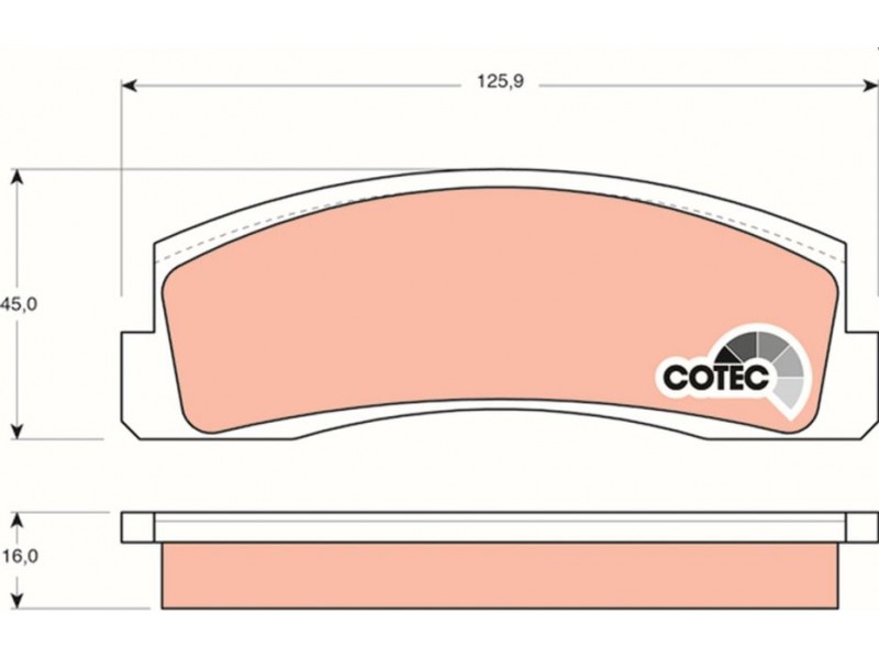 Criteries : Επαφή προειδοποίησης φθοράς όχι προετοιμασμένο για προειδοποιητική ένδειξη φθοράς, Πάχος [mm] 16, Περιορισμός κατασκευαστή BENDIX, Πλάτος [mm] 125,9, Στοιχεία ελέγχου E9 90R 01107/404, Υψος [mm] 45