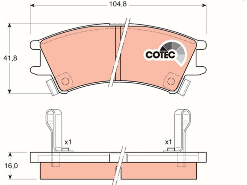 Criteries : Επαφή προειδοποίησης φθοράς με ηχητική προειδοποίηση φθοράς, Πάχος [mm] 16, Περιορισμός κατασκευαστή MANDO, Πλάτος [mm] 104,8, Στοιχεία ελέγχου E1 90R 01024/251, Υψος [mm] 41,8