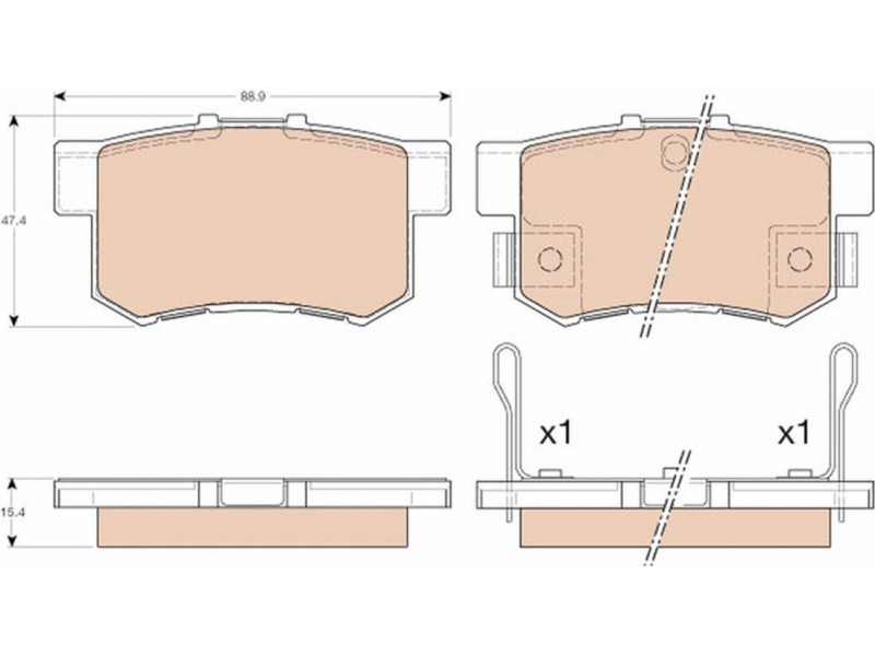 Criteries : Επαφή προειδοποίησης φθοράς με ηχητική προειδοποίηση φθοράς, Πάχος [mm] 15,4, Περιορισμός κατασκευαστή AKEBONO, Πλάτος [mm] 88,9, Στοιχεία ελέγχου E1 90R 01025/422, Υψος [mm] 47,4