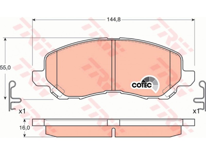 Criteries : Επαφή προειδοποίησης φθοράς με ηχητική προειδοποίηση φθοράς, Πάχος [mm] 16, Περιορισμός κατασκευαστή AKEBONO, Πλάτος [mm] 144,8, Στοιχεία ελέγχου E9 90R 01107/380, Συμπληρωματικό προϊόν / συμπληρωματική πληροφορία με αξεσουάρ, Υψος [mm] 55