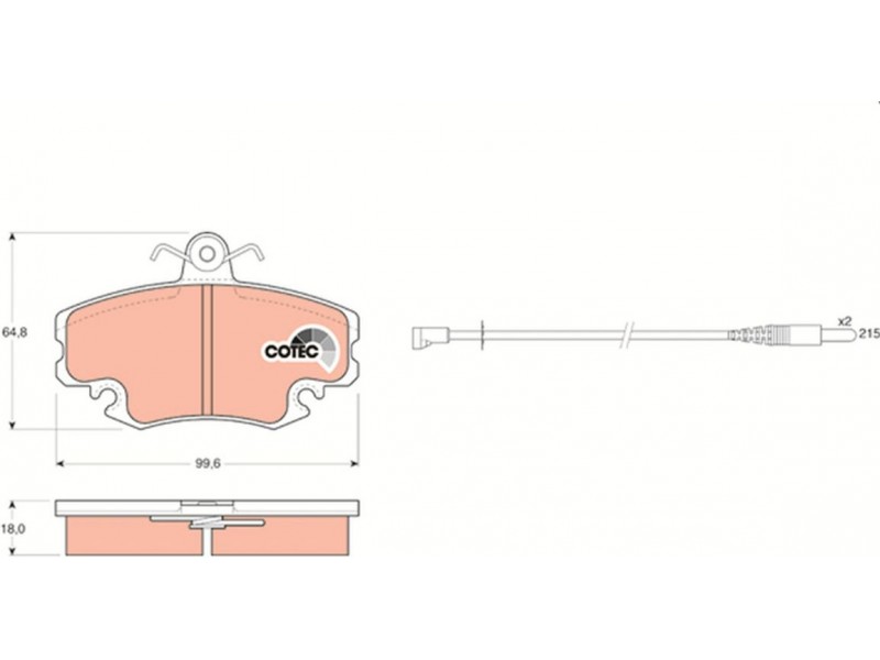 Criteries : Επαφή προειδοποίησης φθοράς συμπεριλ. επαφής για ένδειξη φθοράς, Μήκος επαφής προειδοποίησης [mm] 215, Πάχος [mm] 18, Περιορισμός κατασκευαστή TRW, Πλάτος [mm] 99,6, Πλήθος ενδείξεων φθοράς [ανά άξονα] 2, Στοιχεία ελέγχου E1 90R 01024/113, Συμπληρωματικό προϊόν / συμπληρωματική πληροφορία με αξεσουάρ, Συμπληρωματικό προϊόν/ πληροφορίες 2 με βίδες δαγκάνας φρένων, Υψος [mm] 64,8