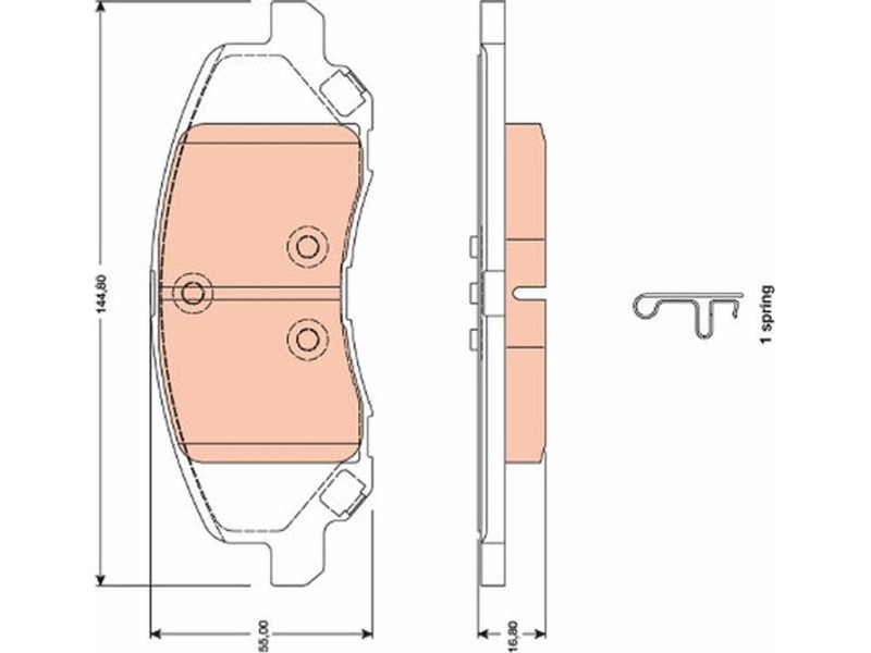 Criteries : Επαφή προειδοποίησης φθοράς με ηχητική προειδοποίηση φθοράς, Πάχος [mm] 16,8, Περιορισμός κατασκευαστή AKEBONO, Πλάτος [mm] 144,8, Στοιχεία ελέγχου E9 90R - 01107/380, Συμπληρωματικό προϊόν / συμπληρωματική πληροφορία με αξεσουάρ, Υψος [mm] 55