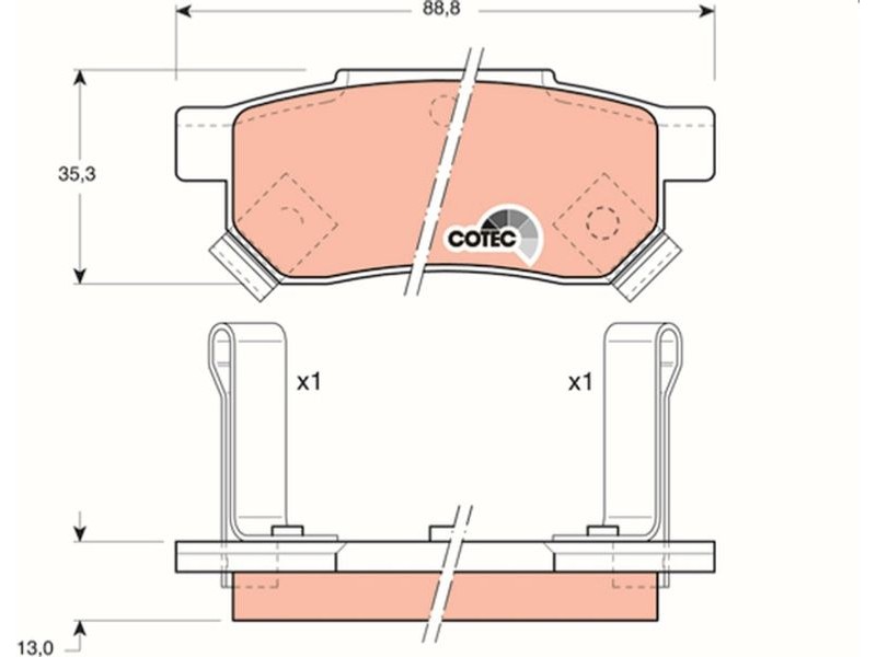 Criteries : Επαφή προειδοποίησης φθοράς με ηχητική προειδοποίηση φθοράς, Πάχος [mm] 13, Περιορισμός κατασκευαστή AKEBONO, Πλάτος [mm] 88,8, Στοιχεία ελέγχου E1 90R 01025/400, Συμπληρωματικό προϊόν / συμπληρωματική πληροφορία με αξεσουάρ, Συμπληρωματικό προϊόν/ πληροφορίες 2 με βίδες δαγκάνας φρένων, Υψος [mm] 35,3