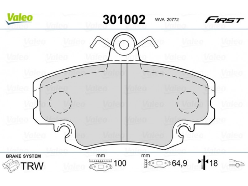 Valeo Σετ τακάκια, Δισκόφρενα - 301002