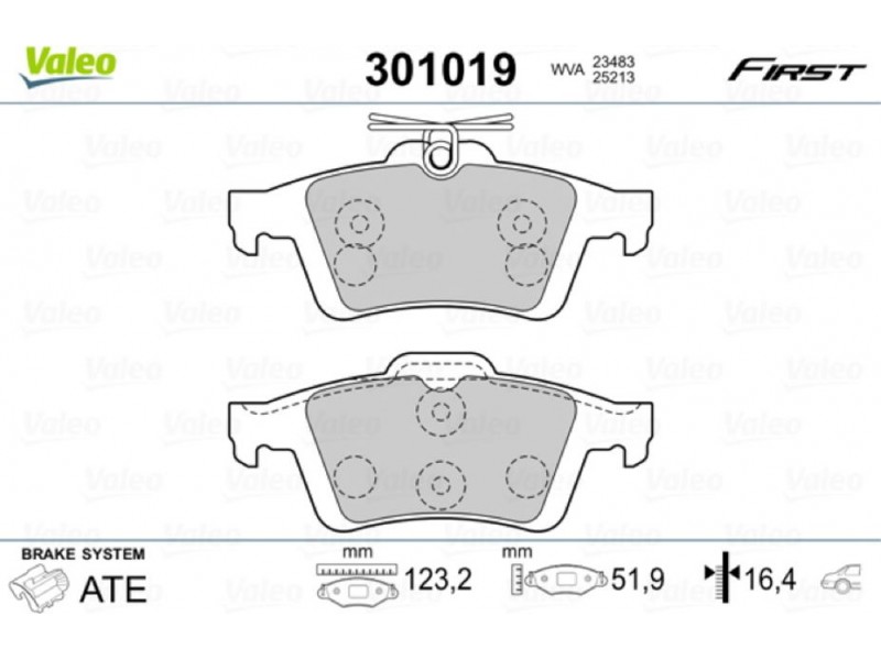 301019 ΤΑΚΑΚΙΑ ΠΙΣΩ VALEO 301019 - Σετ τακάκια, δισκόφρενα