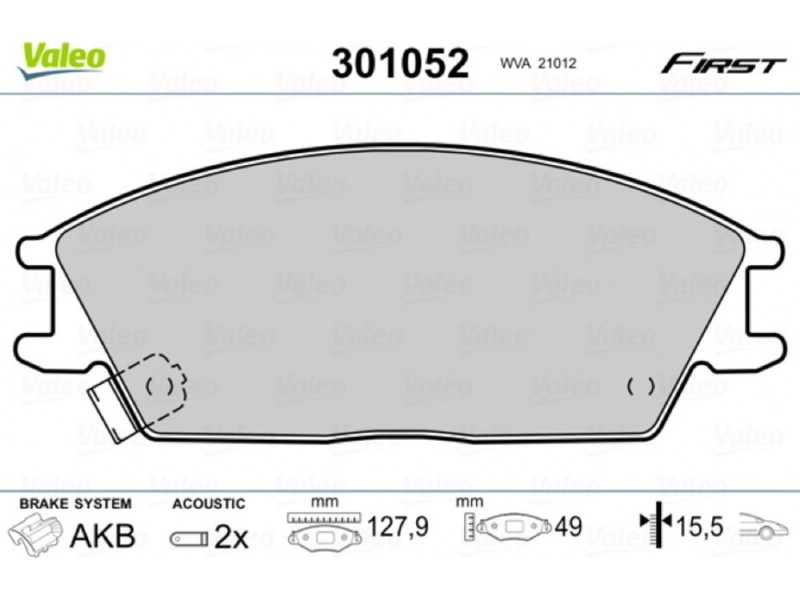 301052 ΤΑΚΑΚΙΑ ΕΜΠ.(ΣΥΣΤ.AKEBONO) VALEO 301052 - Σετ τακάκια, δισκόφρενα
