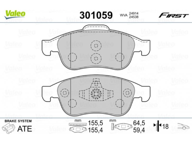 Valeo Σετ τακάκια, Δισκόφρενα - 301059