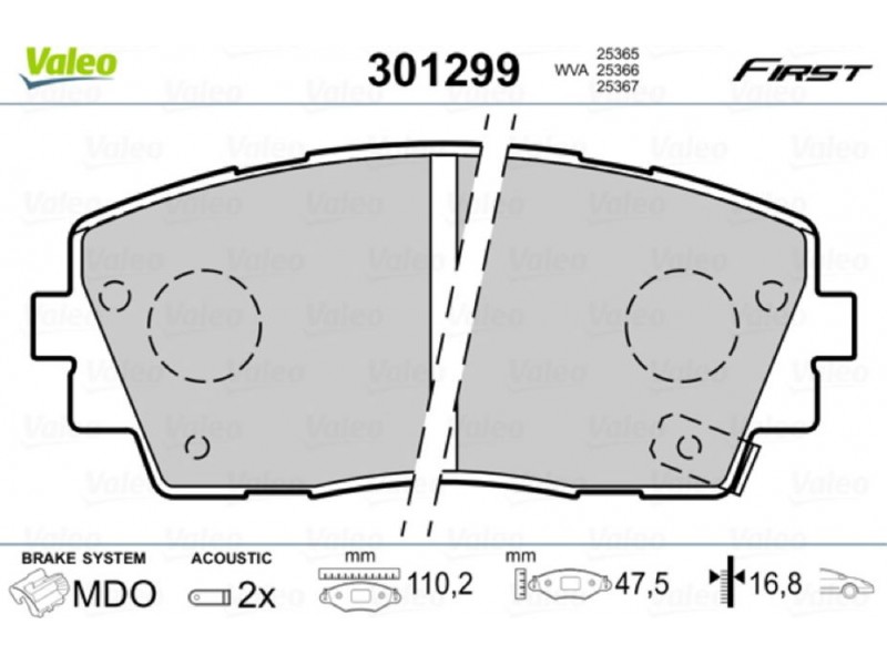 VALEO ΔΙΣΚΟΦΡΕΝΑ HYUNDAI VALEO 301299 - Σετ τακάκια, δισκόφρενα