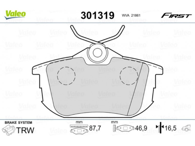Valeo Σετ τακάκια, Δισκόφρενα - 301319