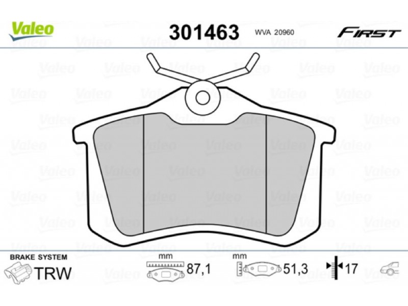 VALEO ΔΙΣΚΟΦΡΕΝΑ VALEO 301463 - Σετ τακάκια, δισκόφρενα