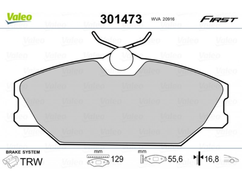 Criteries : Αριθμός WVA 20916, Βάρος [kg] 1,86, Επαφή προειδοποίησης φθοράς εξαιρ. επαφής προειδ. φθοράς, Πάχος [mm] 16,8, Πλάτος [mm] 129, Πλευρά τοποθέτησης μπροστινός άξονας, Στοιχεία ελέγχου ECE-R90, Συμπληρωματικό προϊόν/ πληροφορίες 2 χωρίς αντικραδασμικό έλασμα, Σύστημα φρένων TRW, Υψος [mm] 55,6
