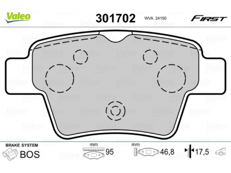 Criteries : Αριθμός WVA 24150, Επαφή προειδοποίησης φθοράς εξαιρ. επαφής προειδ. φθοράς, Πάχος [mm] 17,5, Πλάτος [mm] 95, Πλευρά τοποθέτησης Πίσω άξονας, Στοιχεία ελέγχου ECE-R90, Συμπληρωματικό προϊόν/ πληροφορίες 2 χωρίς αντικραδασμικό έλασμα, Σύστημα φρένων BOSCH, Υψος [mm] 46,8