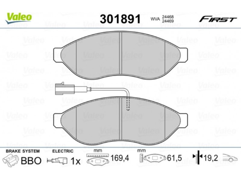 VA301891447 ΤΑΚΑΚΙΑ ΕΜΠΡ. VALEO 301891 - Σετ τακάκια, δισκόφρενα