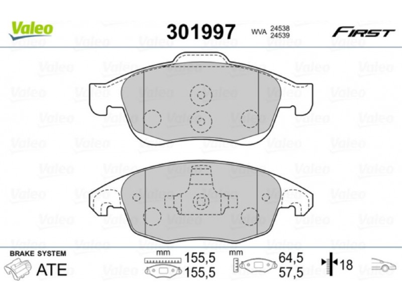 Valeo Σετ τακάκια, Δισκόφρενα - 301997