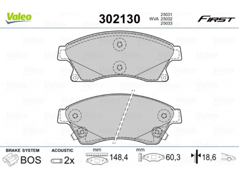 Valeo Σετ τακάκια, Δισκόφρενα - 302130