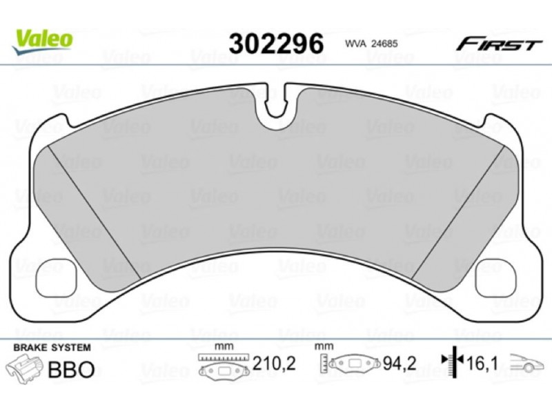 VALEO ΔΙΣΚΟΦΡΕΝΑ VALEO 302296 - Σετ τακάκια, δισκόφρενα