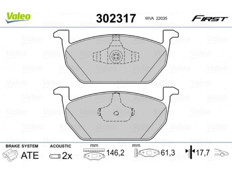 Criteries : Αριθμός WVA 22035, Βάρος [kg] 1,68, Επαφή προειδοποίησης φθοράς συμπεριλ. επαφής για ένδειξη φθοράς, Πάχος [mm] 17,7, Πλάτος [mm] 146, Πλευρά τοποθέτησης μπροστινός άξονας, Πλήθος ενδείξεων φθοράς [ανά άξονα] 2, Στοιχεία ελέγχου ECE-R90, Συμπληρωματικό προϊόν/ πληροφορίες 2 με αντικραδασμικό έλασμα, Σύστημα φρένων TEVES, Υψος [mm] 61,3