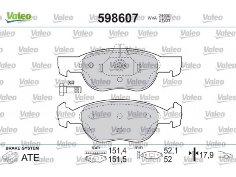 VALEO ΔΙΣΚΟΦΡΕΝΑ VALEO 598607 - Σετ τακάκια, δισκόφρενα