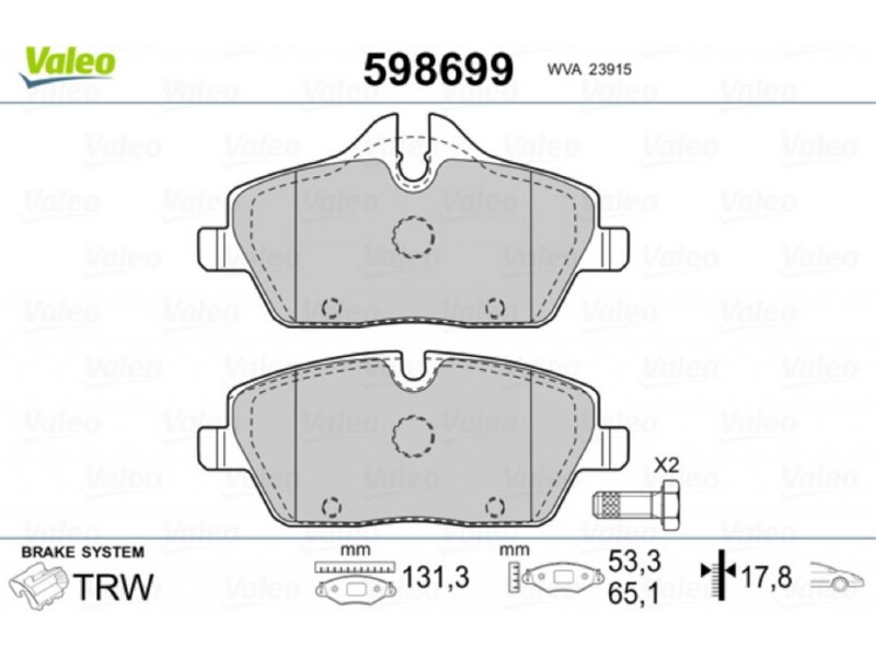 Valeo Σετ τακάκια, Δισκόφρενα - 598699