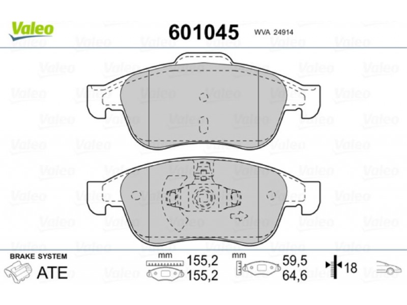 VALEO ΔΙΣΚΟΦΡΕΝΑ VALEO 601045 - Σετ τακάκια, δισκόφρενα