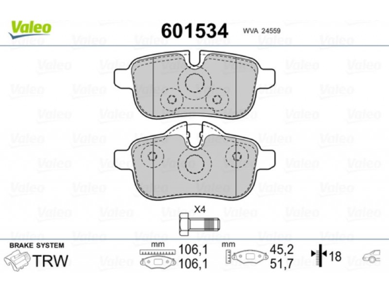 Valeo Σετ τακάκια, Δισκόφρενα - 601534