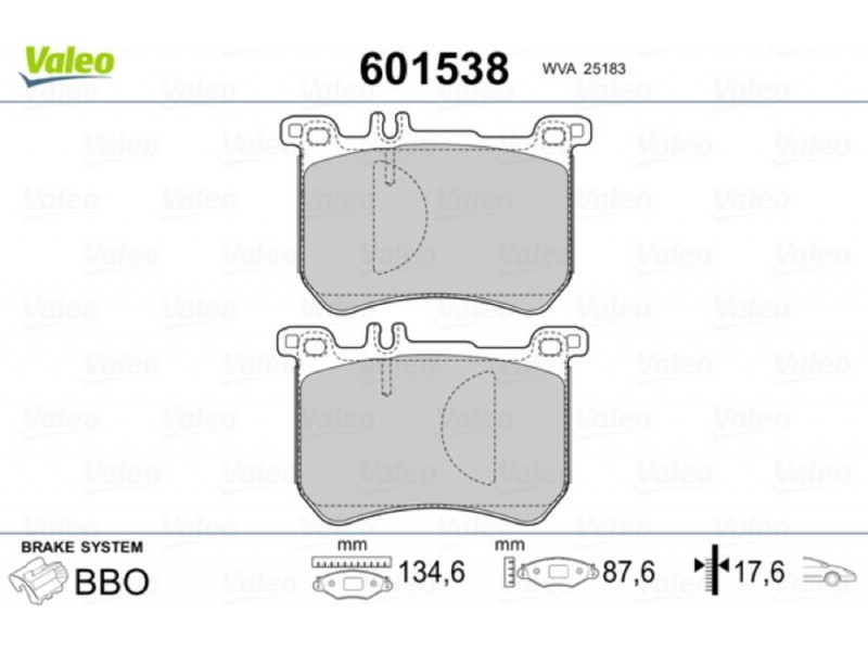 Valeo Σετ τακάκια, Δισκόφρενα - 601538